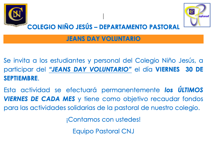 JEANS DAY VOLUNTARIO VIERNES 30 DE SEPTIEMBRE