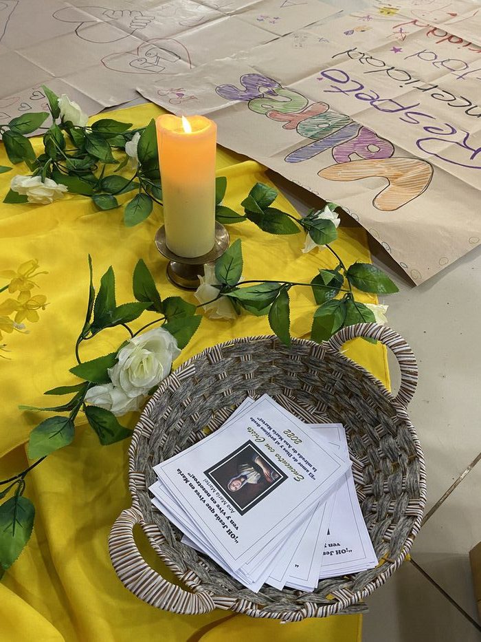 Bajo el lema “El amor a Dios y al prójimo desde la Mirada de Ana María Martel”, vivieron distintos momentos de reflexión, juegos y trabajo en equipo, para reconocer el amor de Dios y al prójimo, en la vida y obra de Ana María Martel. Así mismo, realizaron un compromiso para ser “embajadores por la paz y el buen trato”, velando por el autocuidado y el cuidado de sus compañeros y compañeras en el colegio.