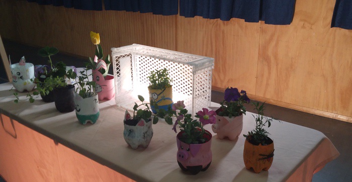Tulipanes, frutillas, menta, ruda, orégano, entre otras; además de fabricar juguetes con materiales reciclables y afiches alusivos al tema.