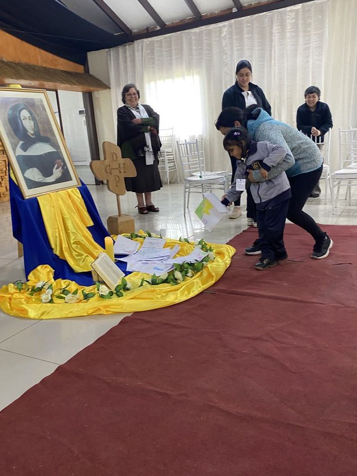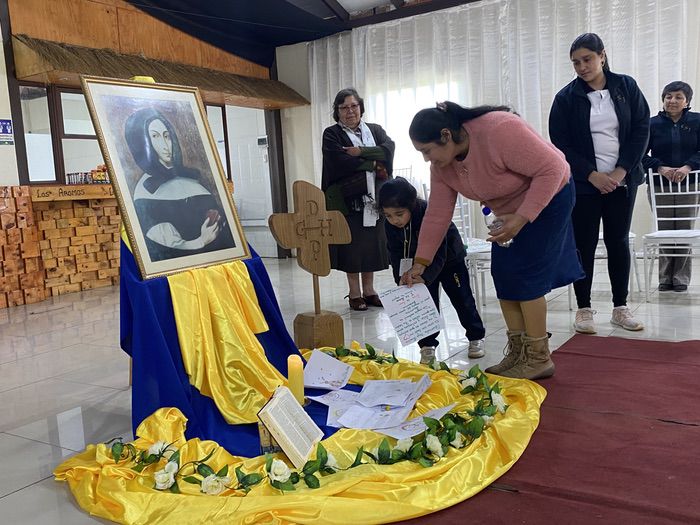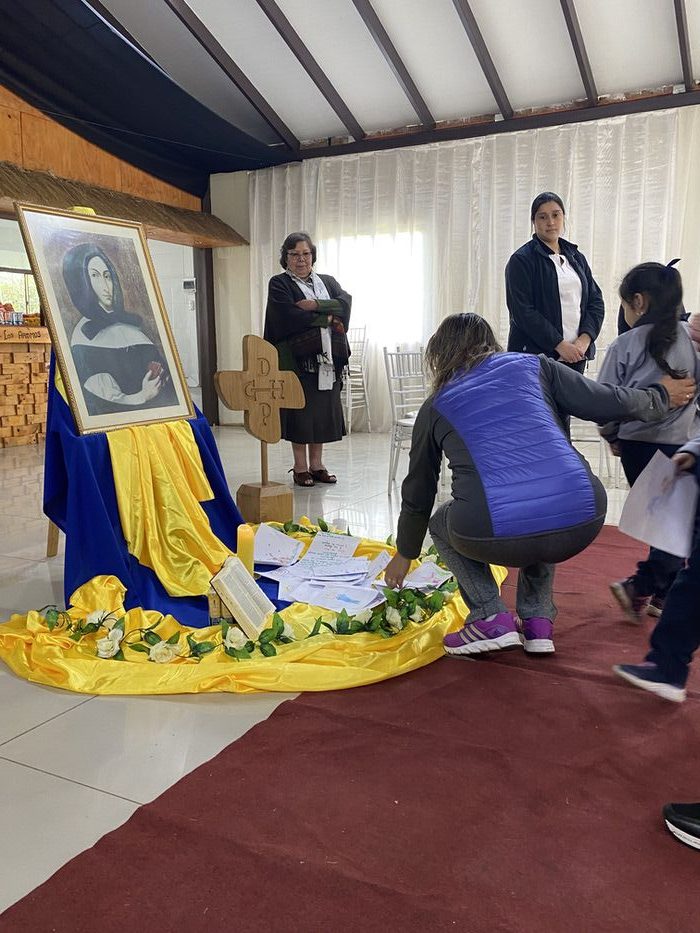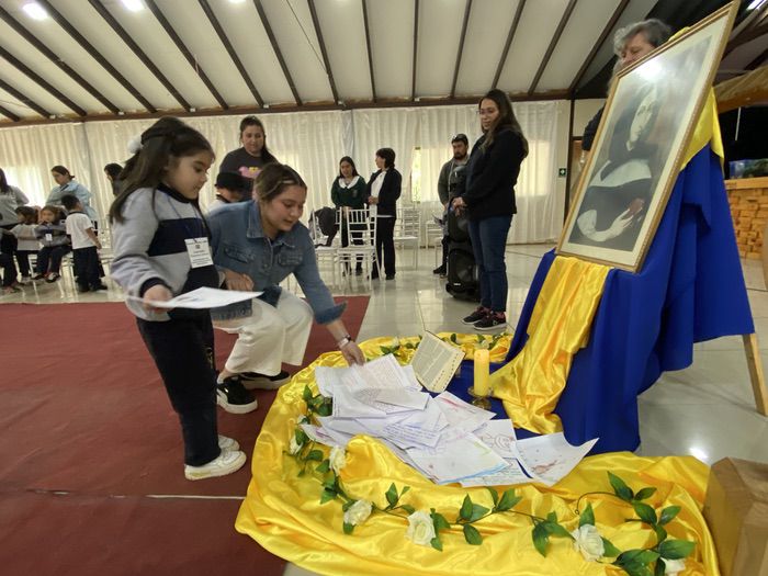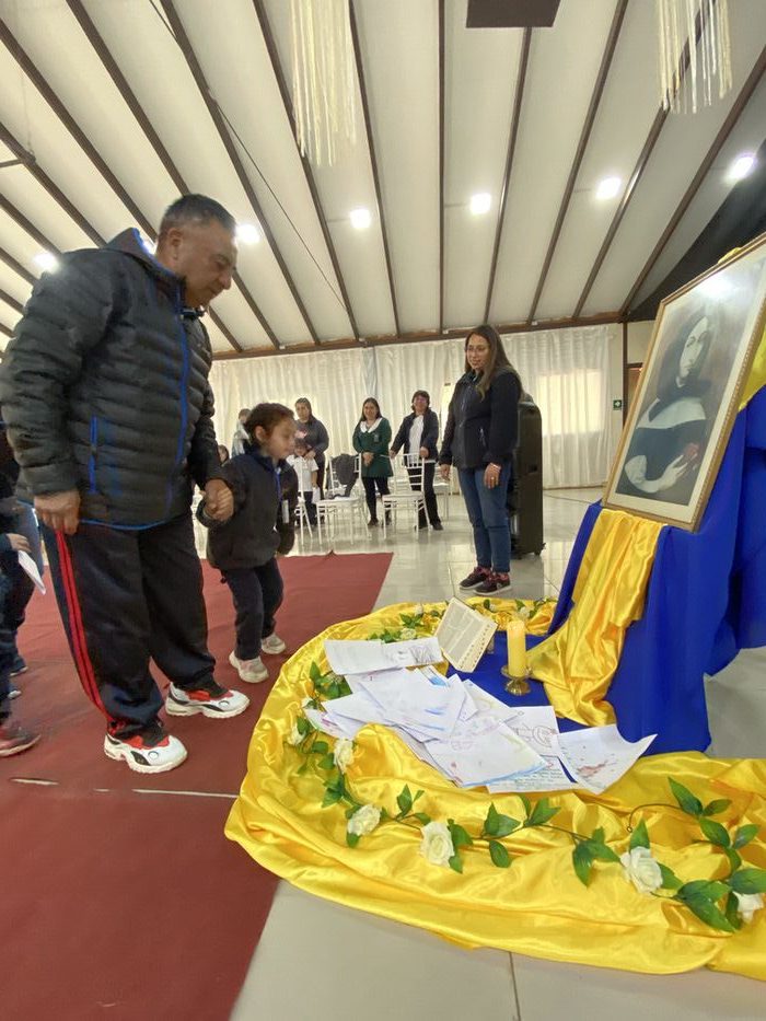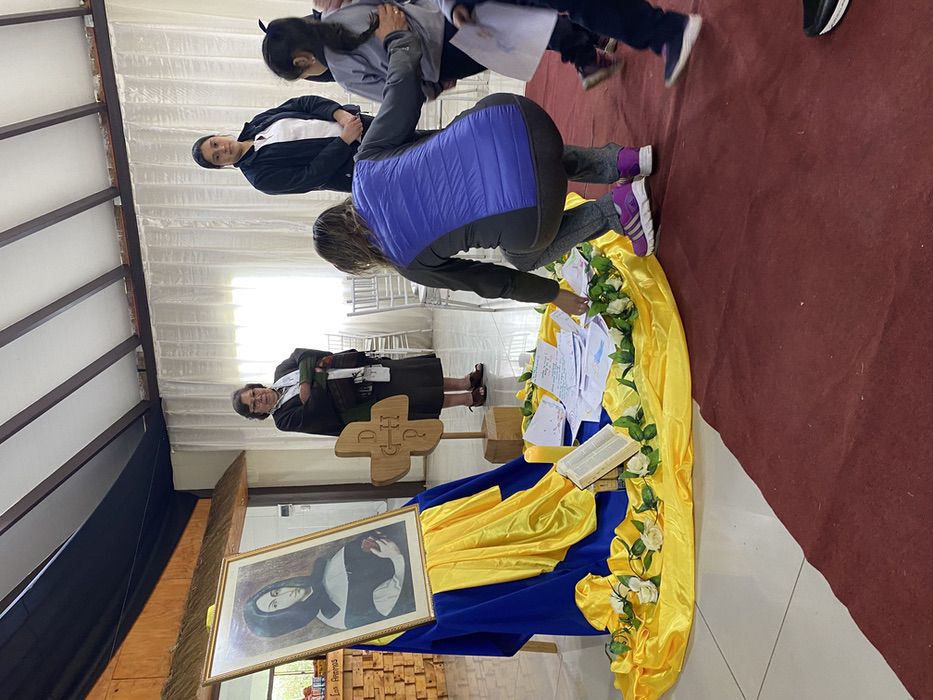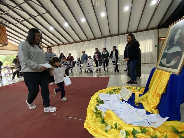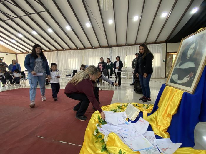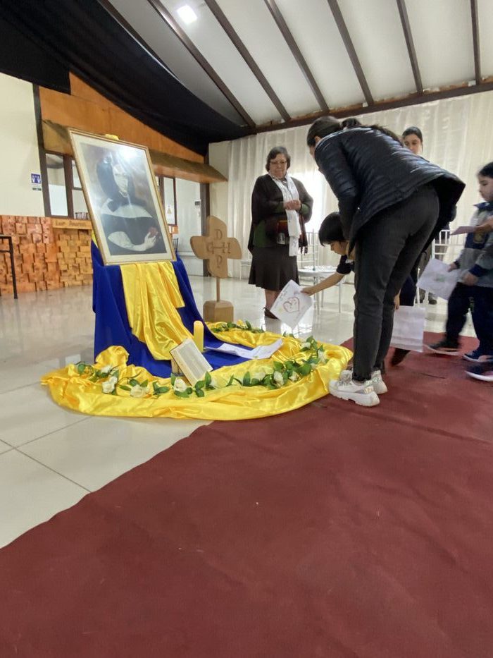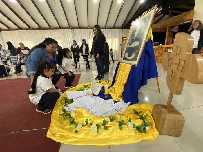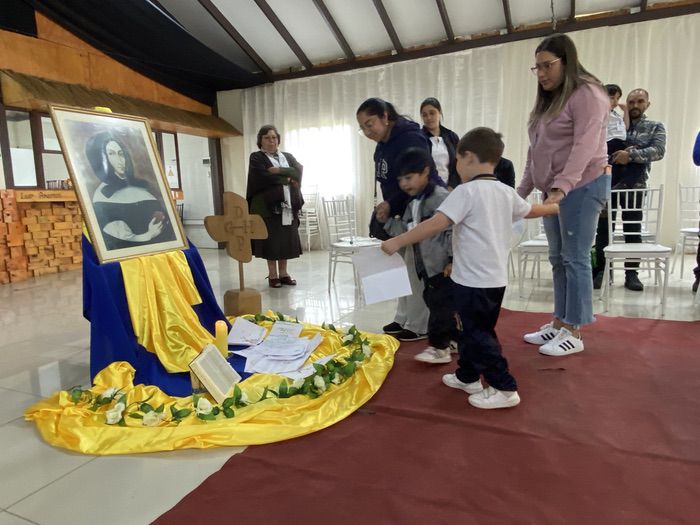 Finalmente, en una liturgia, los estudiantes dejaron sus trabajos y dibujos a los pie de la imagen de Ana María Martel, para que ella interceda ante el Señor toda la comunidad educativa.