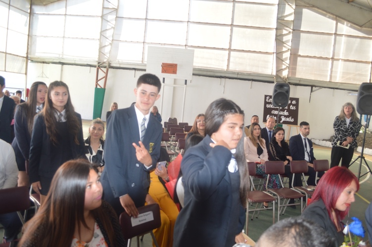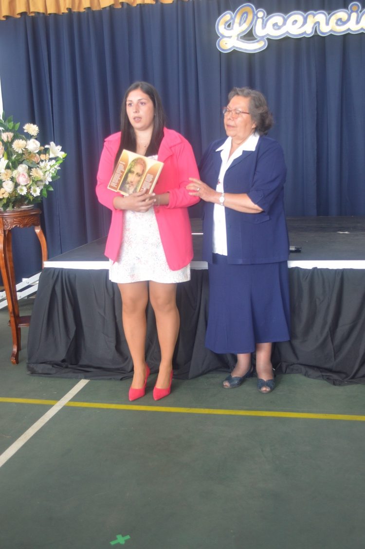 Con el rito de la señal de la cruz, la Hna. Pilar Salazar Pascal despide a los estudiantes que hoy egresan y los envía en misión, para que sean luz y esperanza para el mundo, dando testimonio del amor de Dios encarnado en Jesús.