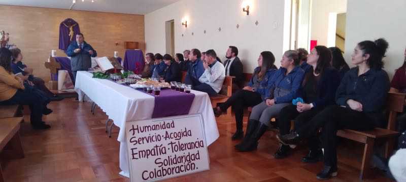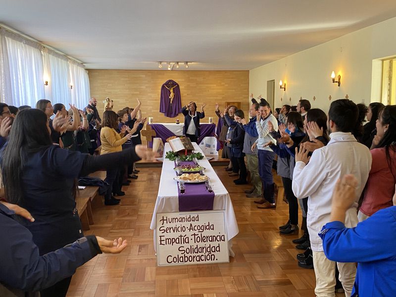 En un ambiente de mucho recogimiento, la comunidad educativa del Colegio Niño Jesús, participó de la celebración de la Última Cena. Todos los niveles de enseñanza, junto a sus respectivas directivas de los microcentros de padres y apoderados, profesores y asistentes de la educación, pudieron hacer memoria agradecida del recuerdo de la Cena de Jesús junto a sus discípulos.