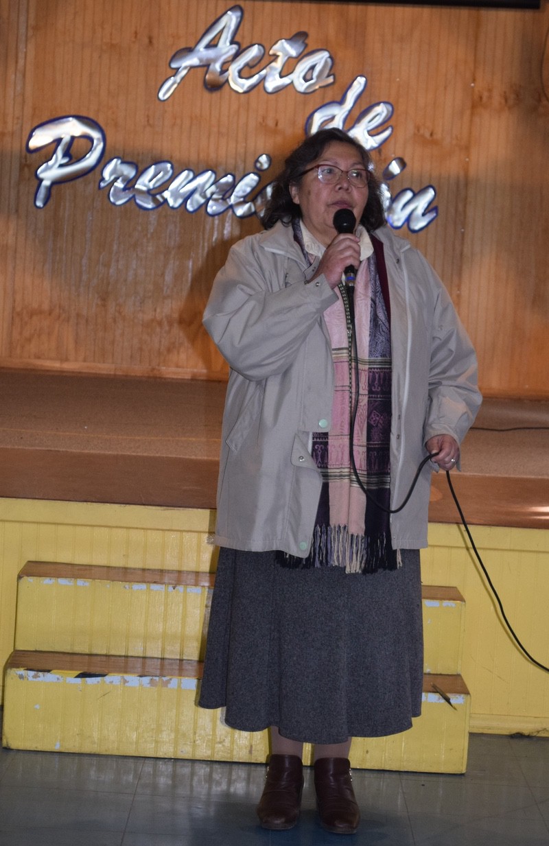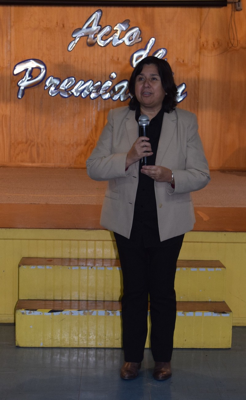La oración es dirigida por la profesora de Religión Carmen Gloria Jara Novoa para los estudiantes de Segundo Ciclo.