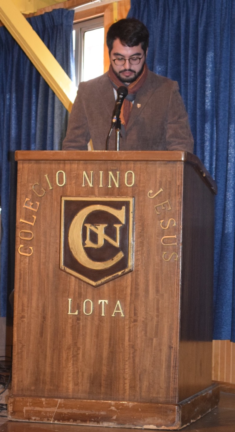 El Director del Colegio Sr. Óscar Bórquez entrega su mensaje a los estudiantes al culminar este Primer Semestre.