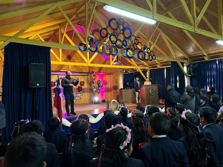 El Sr. Óscar Bórquez López, director de nuestro colegio, entrega un saludo a los estudiantes en este acto.