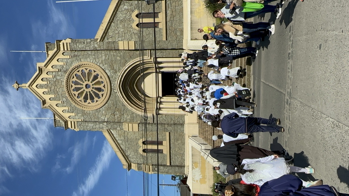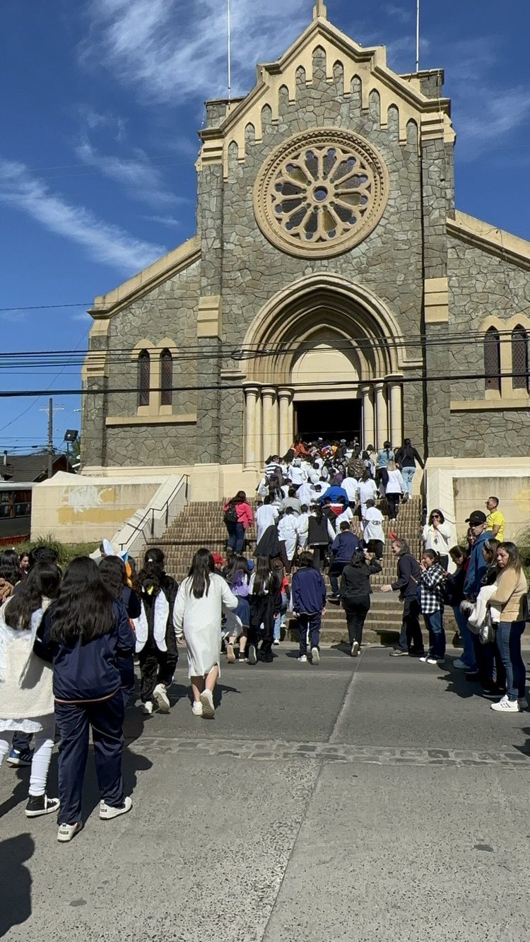 Los colegios peregrinaron desde dos puntos de la ciudad, para encontrarse en una iglesia que es un referente importante para la fe, el patrimonio religioso y cultural de Lota, es decir, la Iglesia San Matías Apóstol.