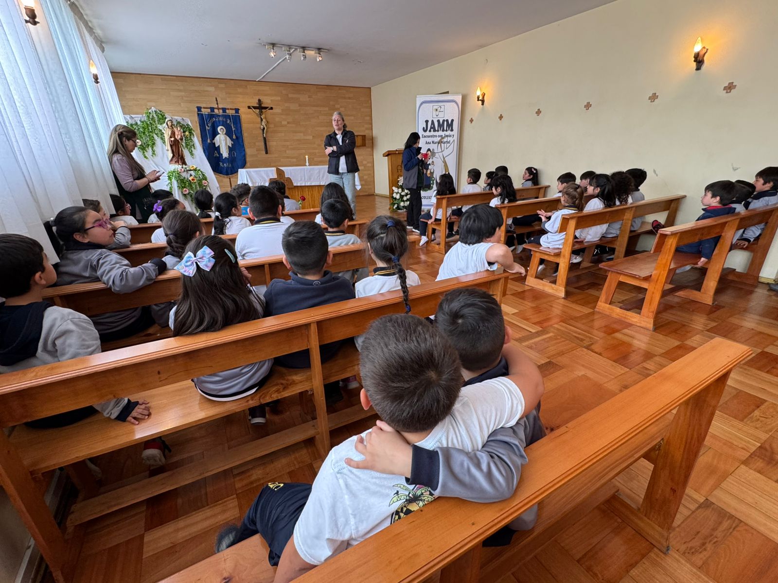 Los estudiantes de Kínder vinieron el JAMM junto al equipo pastoral, sus educadoras y tías técnicos.