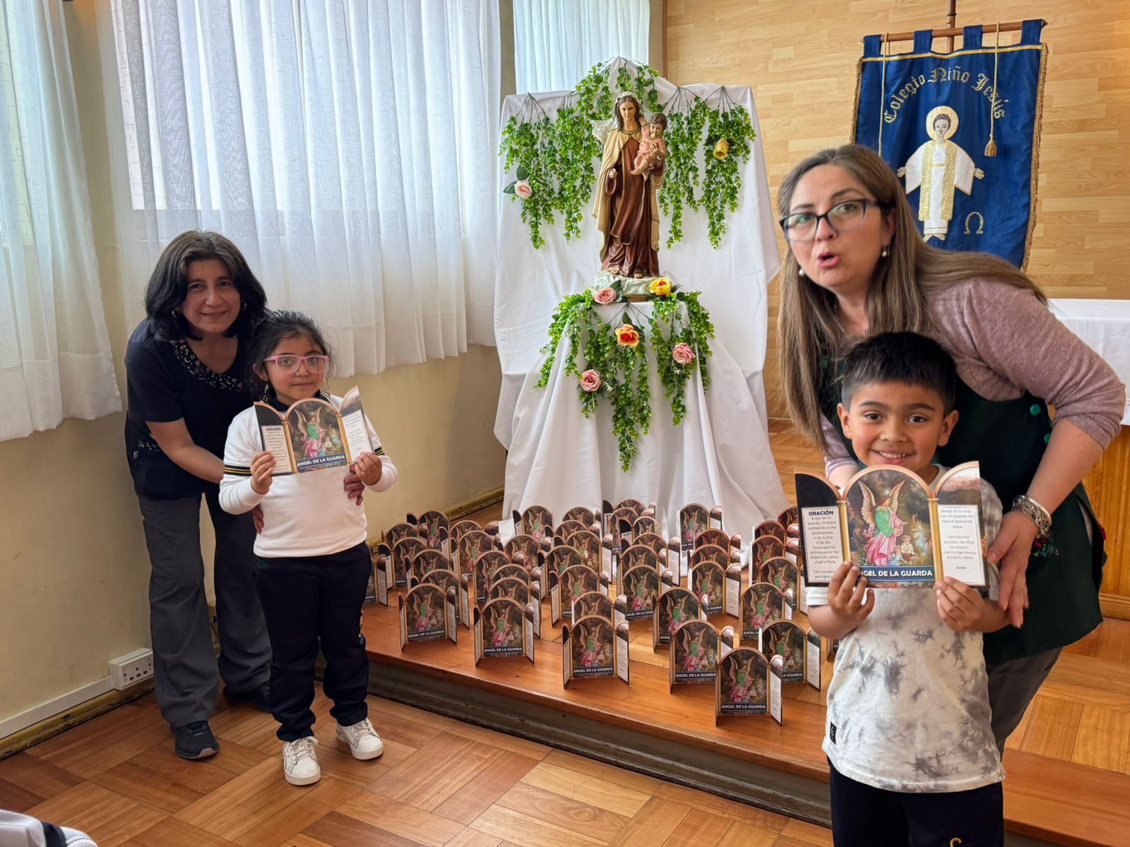 Junto con jugar, cantar y divertirse, tuvieron un espacio de oración y recogimiento, en torno a nuestra madre María, momento en donde recibieron la oración del Ángel de la Guarda, para rezar en familia.