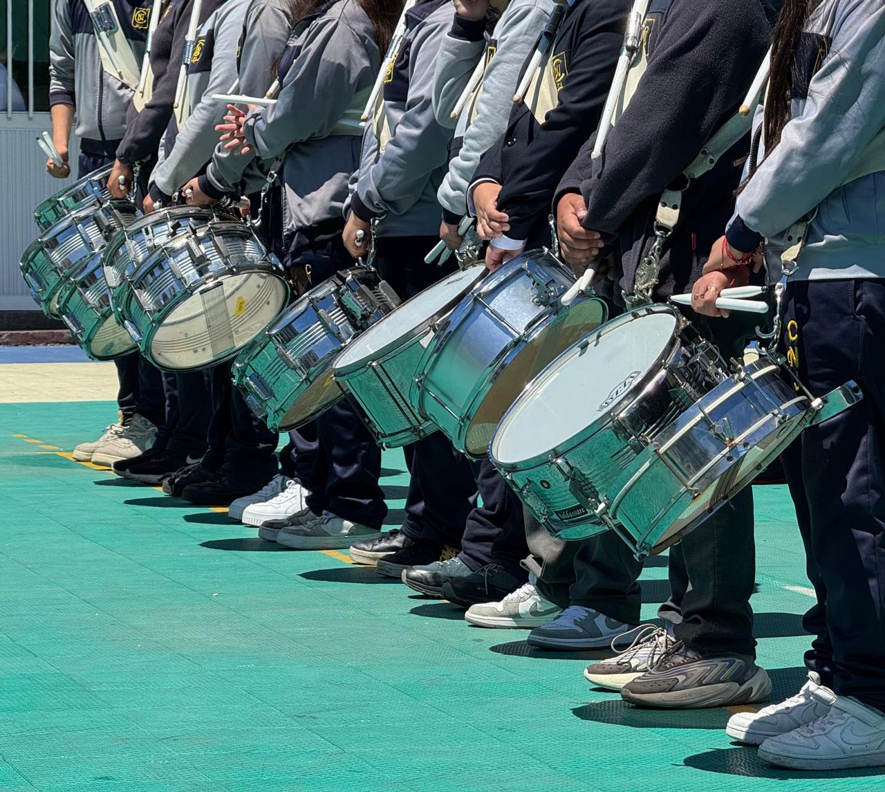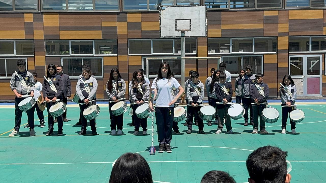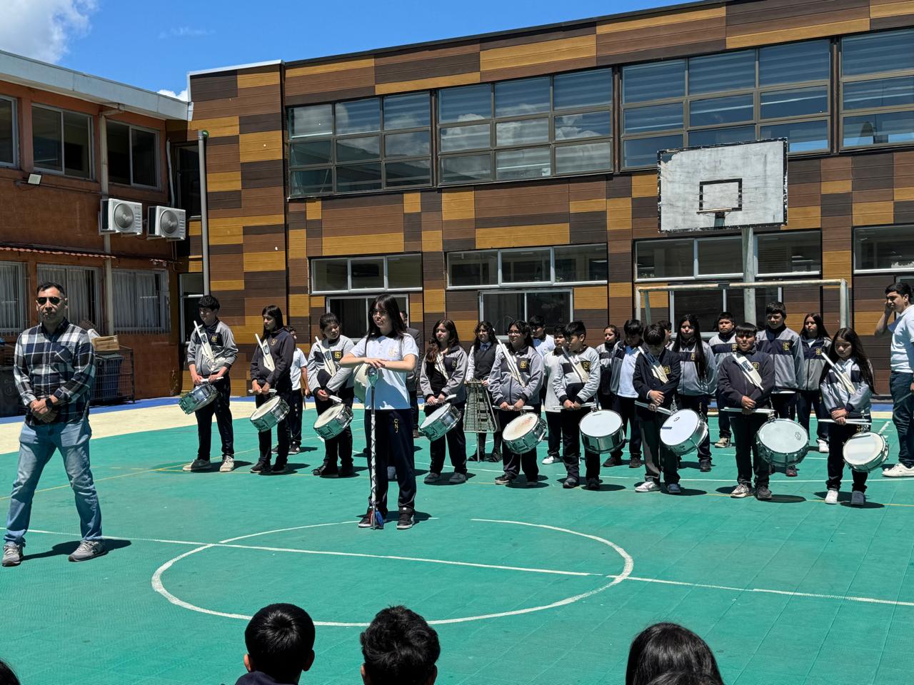 Una sección de estudiantes pertenecientes a la Banda de Guerra de nuestro colegio, realizó una presentación ante estudiantes y profesores de nuestra unidad educativa.