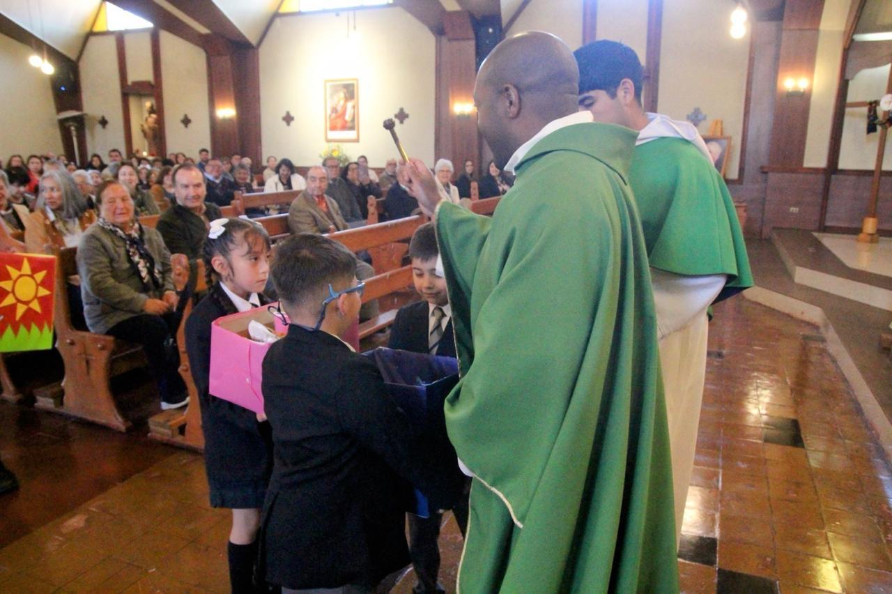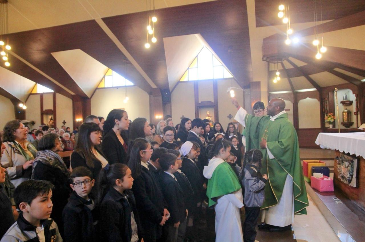 En un ambiente de mucha alegría y fraternidad, se vivió la Eucaristía en la parroquia San Juan Evangelista, en donde los primeros, segundos y el nivel Pre escolar, fueron los encargados de animar la celebración.