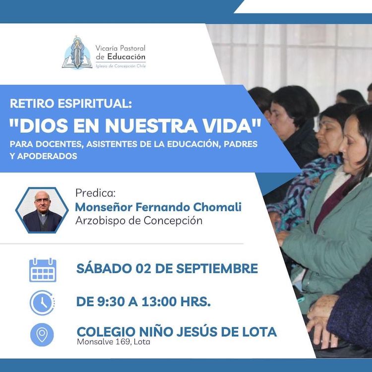 Participa en el retiro espiritual «Dios en nuestra vida», predicado por el Arzobispo de Concepción, Monseñor Fernando Chomali. MÁS INFO EN: https://web.facebook.com/100066421282513/posts/pfbid0pdM2ZL7JAkKDanBZD6wmrRSeVhFSaoBHkuu7gTfnytVC7..