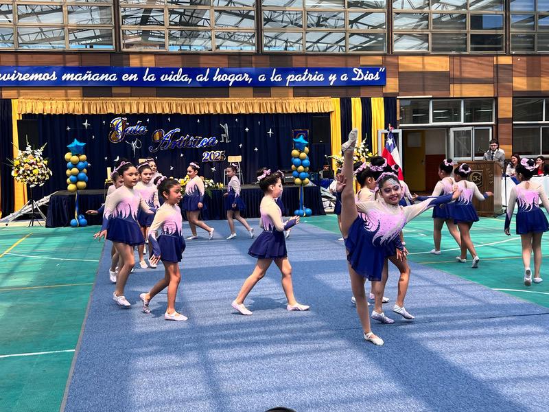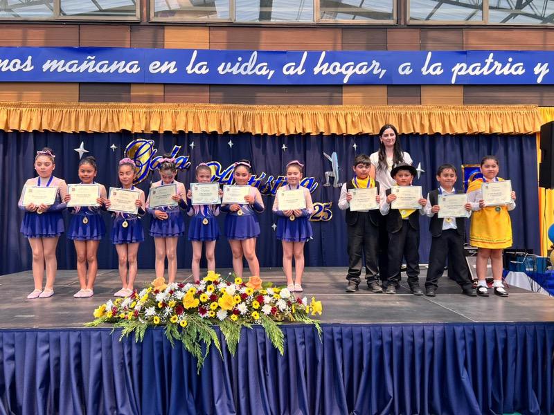 Uno de los hitos de la velada fue la presentación del taller de Gimnasia Rítmica, que rindió un solemne homenaje a los 80 años del Premio Nobel de Gabriela Mistral. Bajo el título “Gabriela, la poeta del amor y la naturaleza”, las estudiantes fusionaron la danza y la poesía en una coreografía que celebró el legado de la intelectual chilena.