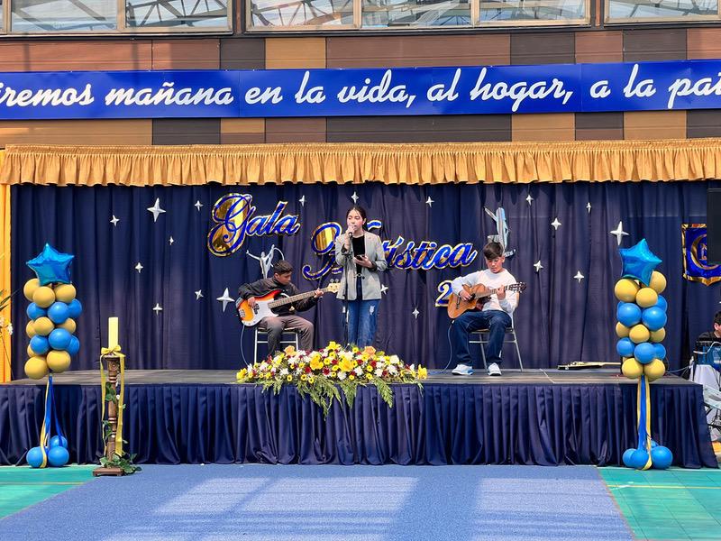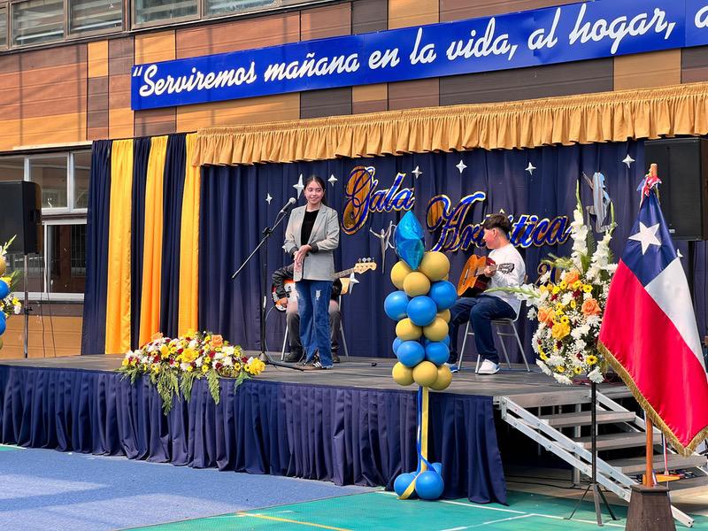 Con una atmósfera de gran emoción, la estudiante de 7°B Selena Pérez Iturra interpretó el tema “Ángel para un final”. Su voz, conmovió a la audiencia, acompañada en guitarra por Yohel Delgado Vásquez y Agustín Carvallo Neira, ambos de octavo año A.