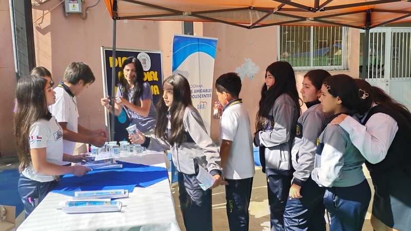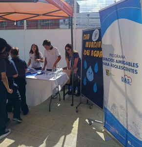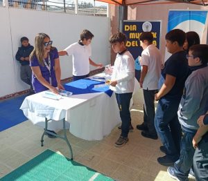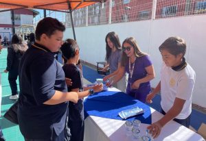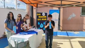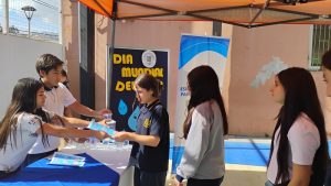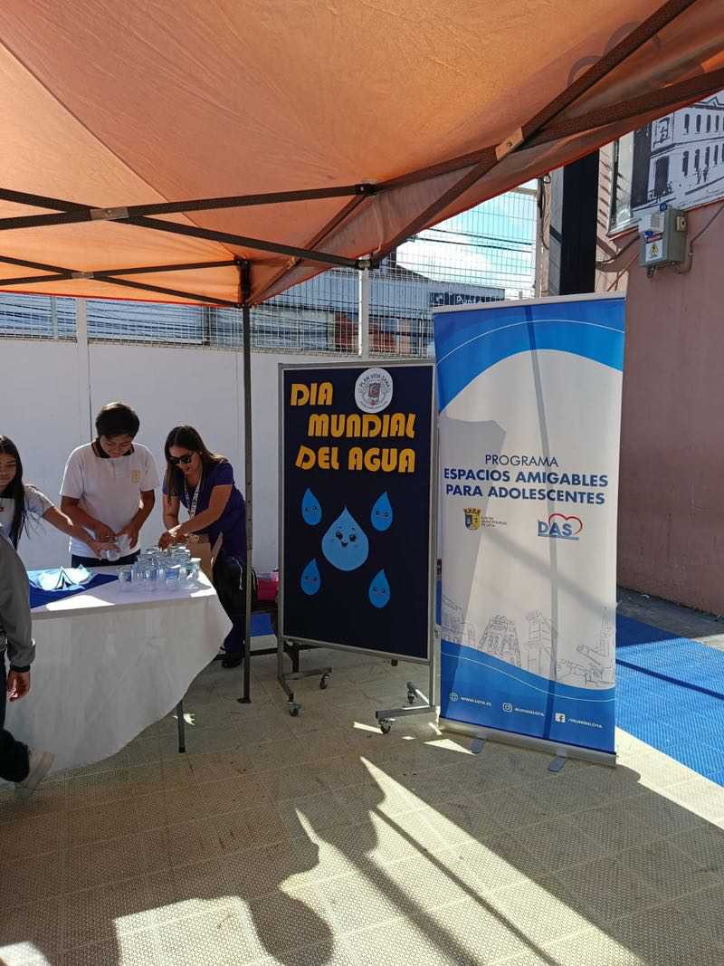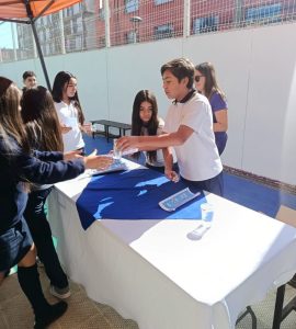 Stand de Hidratación (2º Recreo – Patio Monsalve 169): Nuestra nutricionista Srta. Constanza Fuentealba Garcés, entregó información clave sobre los beneficios del consumo de agua. En este punto informativo, los estudiantes reciben vasos con el vital elemento.